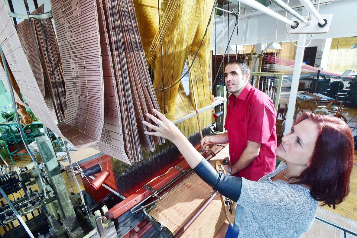 Peggy Wunderlich und Torsten Bäz beleben die 1886 begründete Jacquard-Weberei in Niederwiesa/Braunsdorf in Sachsen neu. Mit ihrem kleinen Team fertigen sie in der CAMMANN GOBELIN MANUFAKTUR mit Kreativität, Handwerkskunst und viel technischem Wissen auf historischen Jacquard-Webstühlen wunderschöne, kostbare Stoffe für Polstermöbel - und fröhliche, warme Mützen.